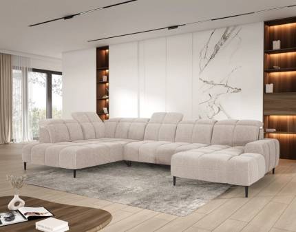 Coltar extensibil SIERRA cu lada pentru depozitare, tetiere reglabile 297x252-267cm