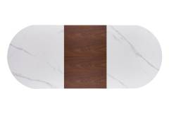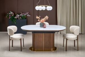 Masa extensibila GIBSON din MDF sinterizat lacuit cu efect de marmura alba, MDF furniruit nuc, otel vopsit negru/ auriu 160-220x90xH76cm