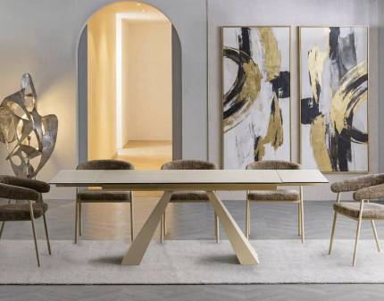 Masa extensibila HILARIO WOOD din piatra sinterizata nuc, metal negru 180-260x90xH75cm