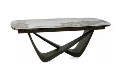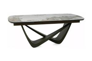 Masa extensibila MARANELLO CERAMIC PANDORO din sticla securizata si ceramica Pandoro alb lucios, metal cupru 200-290x90xH77cm