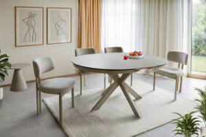 Masa extensibila PORTO CERAMIC TRAVERTIN din sticla securizata si ceramica Travertin, metal casmir 120-160xH76cm