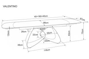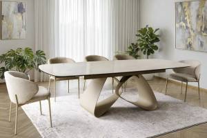 Masa extensibila VALENTINO CERAMIC din ceramica Taj Mahal bej lucios, sticla securizata si metal casmir 180-260x87xH75cm