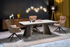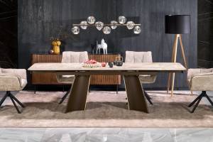 Masa extensibila VESNA din sticla si ceramica cu efect de marmura bej, otel vopsit maro 180-260x90xH76cm