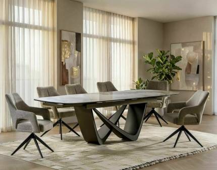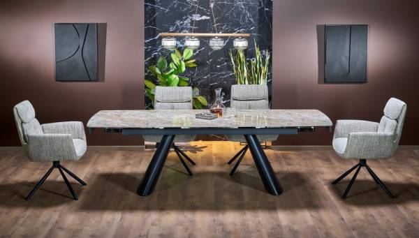 Masa extensibila VINCE din otel sinterizat cu efect de marmura maro, otel vopsit negru 180-238x85xH75cm
