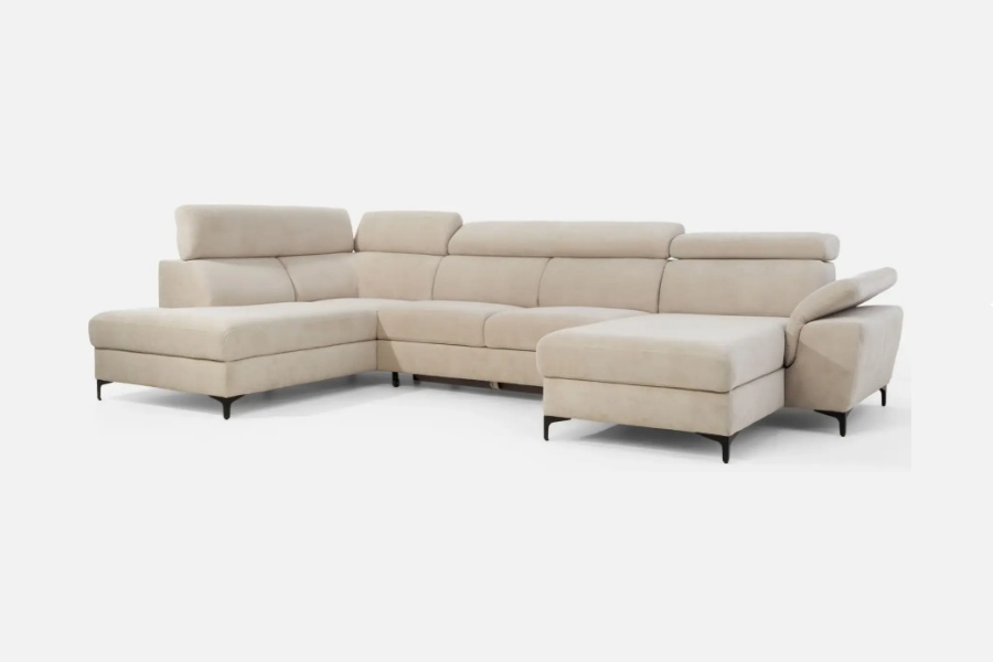 Coltar extensibil BRAGA U cu lada pentru depozitare, tetiere reglabile, personalizabil 211x350x171cm
