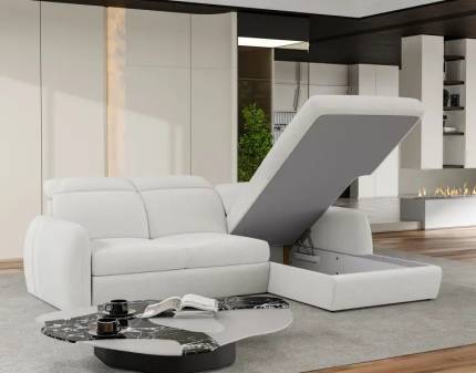 Coltar extensibil FIORE S cu lada pentru depozitare, personalizabil 284x183cm