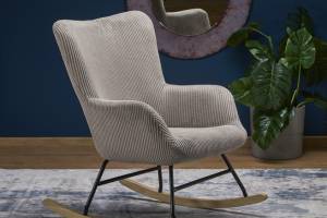 Fotoliu BELMIRO cu functie de balansare, material plusat-raiat grey, picioare nuanta lemnului + negru