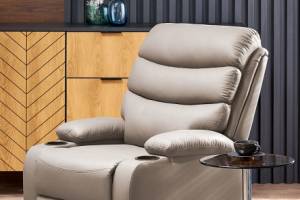 Fotoliu PERUS cu recliner, suport pentru pahare, ecopiele cappuccino 80x100-168xH80-101cm
