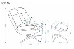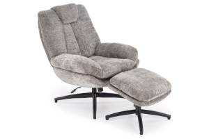 Fotoliu rotativ cu taburet DECLAN cu sistem de balasare, confortabil, material texil-plusat grey 75x42xH100cm
