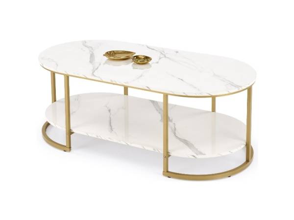 Masuta KALUA din MDF furniruit cu efect de marmura alba, otel auriu 120x60xH46cm