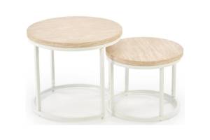 Set 2 masute OREO TRAVERTIN din MDF furniruit travertin, otel vopsit in camp electrostatic alb 53xH45cm / 43xH35cm