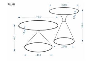 Set 2 masute PILAR din MDF furniruit travertin, otel vopsit in camp electrostatic casmir 70xH40cm 50xH55cm