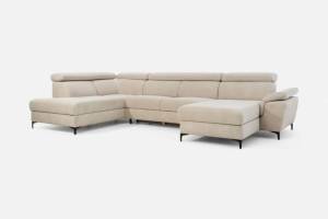Coltar extensibil BRAGA U cu lada pentru depozitare, tetiere reglabile, personalizabil 211x350x171cm